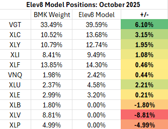 We introduced our Elev8 model in June of 2024 and have been running it in its current form since August 28, 2024. Each month we review the previous month’s positioning and performance to identify what worked and what needs improvement. A brief description of the Elev8 model and its inputs follows the review as an appendix.