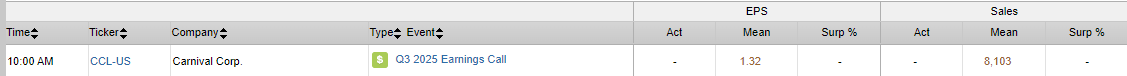 S&P 500 Constituent Earnings Announcements | Monday September 29th, 2025