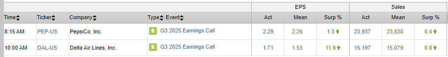 - PEP beat on earnings and revenue, noting accelerating net revenue growth and stronger North American beverage momentum.