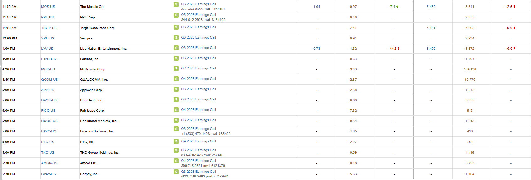 S&P 500 Constituent Earnings Announcements | Wednesday November 5th, 2025
