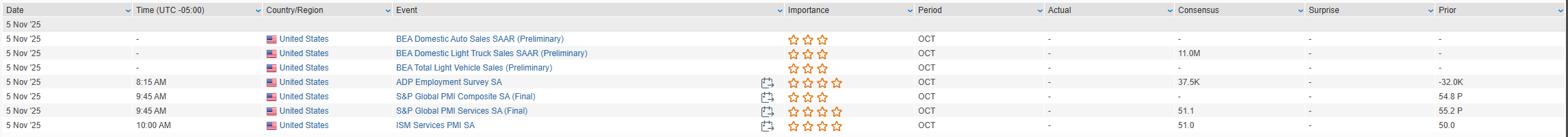 - Treasury quarterly refunding announcement and Supreme Court IEEPA hearing also in focus.