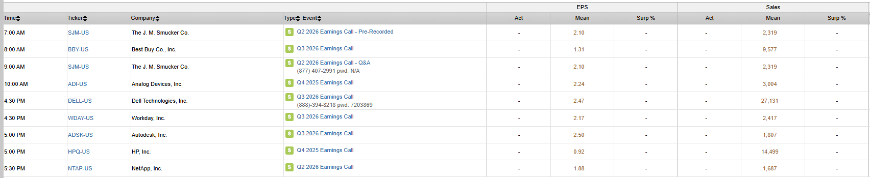 S&P 500 Constituent Earnings Announcements | Tuesday November 25th, 2025