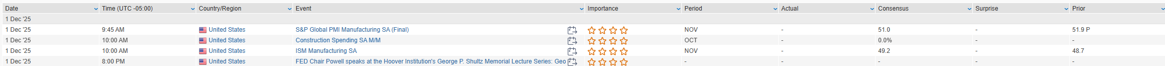 Eco Data Releases | Monday December 1st, 2025