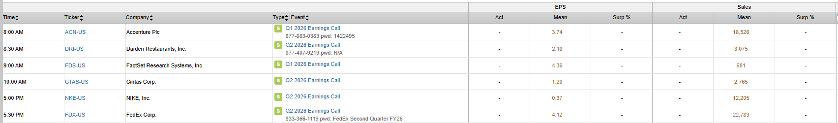S&P 500 Constituent Earnings Announcements | Thursday December 18th, 2025
