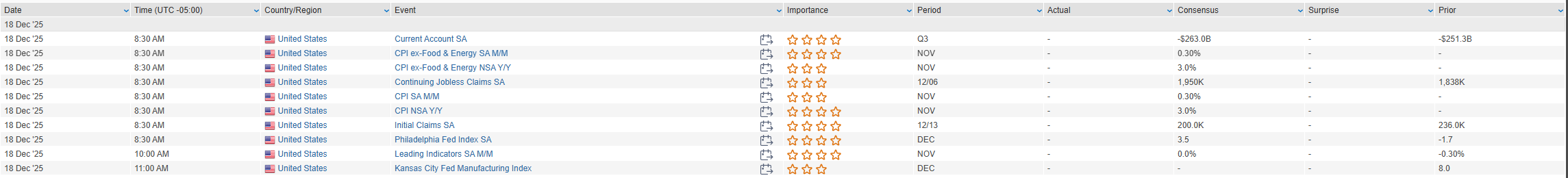 Eco Data Releases | Thursday December 18th, 2025