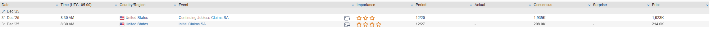 Eco Data Releases | Wednesday December 31st, 2025