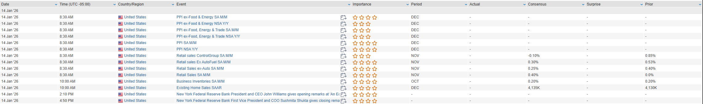 Eco Data Releases | Wednesday January 14th, 2026