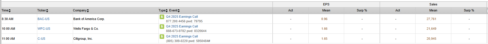 - BAC, C, WFC — Reporting Q4 earnings today.