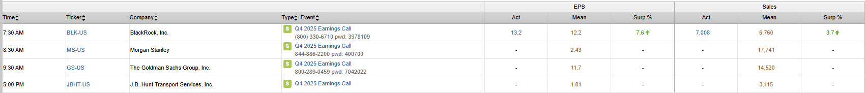 S&P 500 Constituent Earnings Announcements | Thursday January 15th, 2026