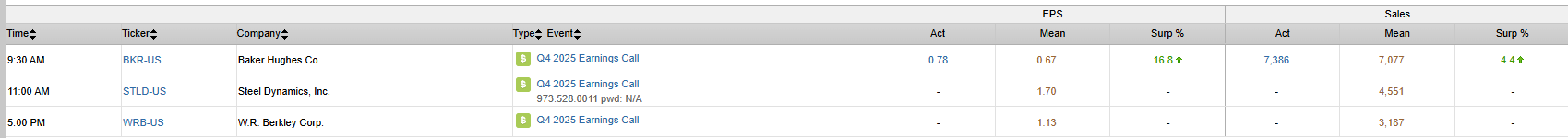 S&P 500 Constituent Earnings Announcements | Monday January 26th, 2026