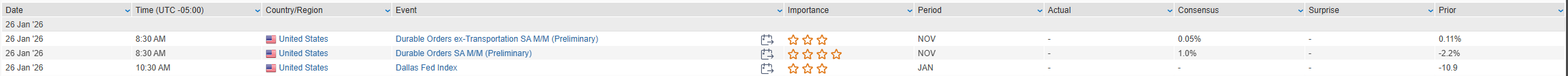 Eco Data Releases | Monday January 26th, 2026