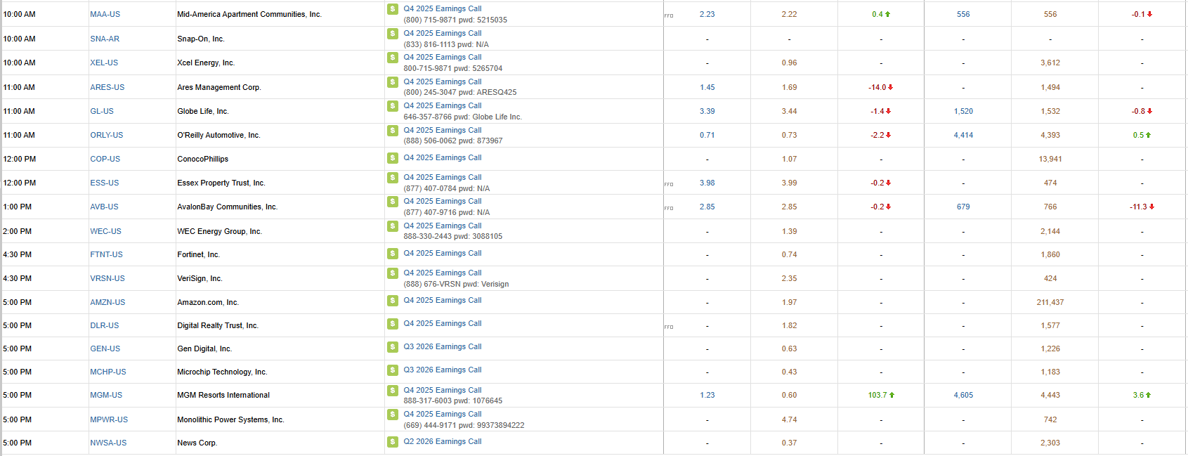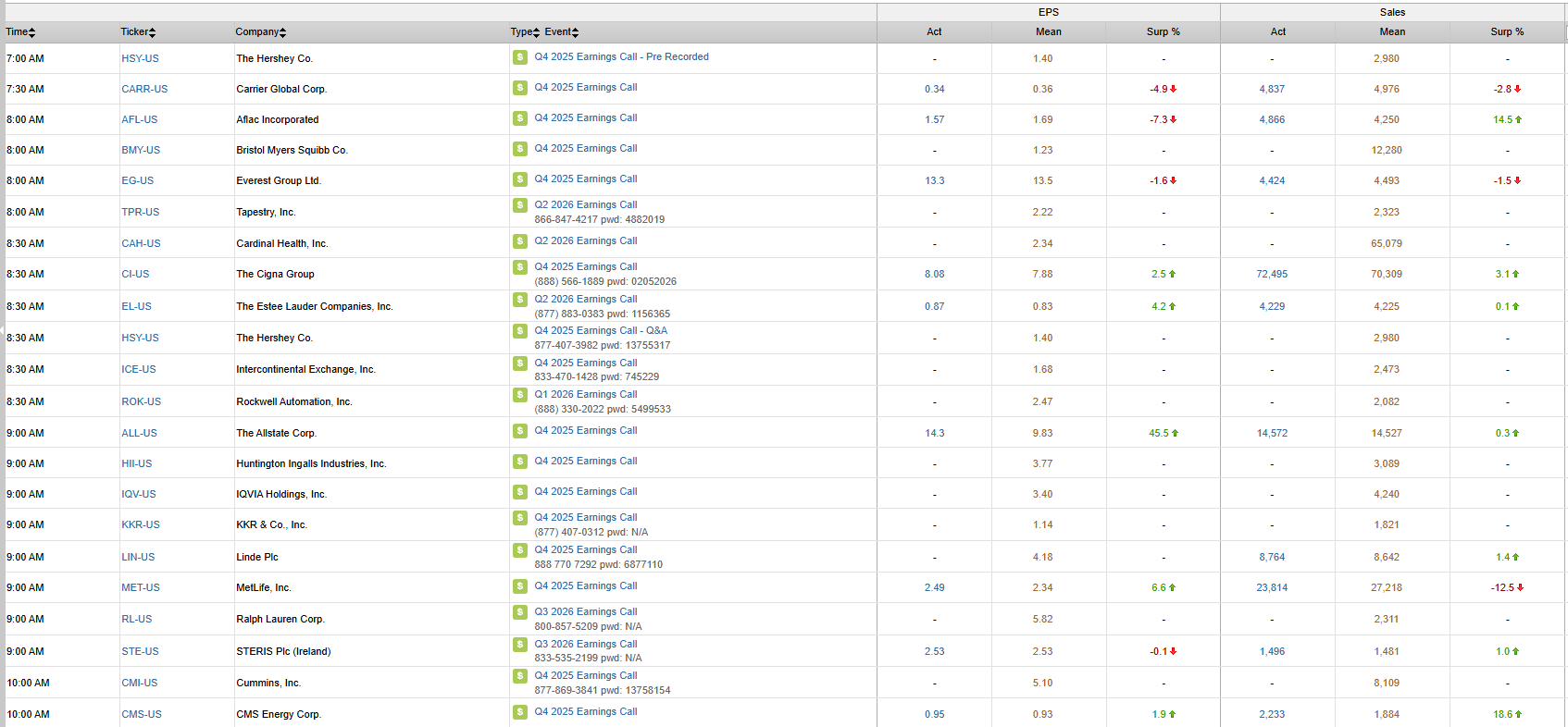 S&P 500 Constituent Earnings Announcements | Thursday February 5th, 2026