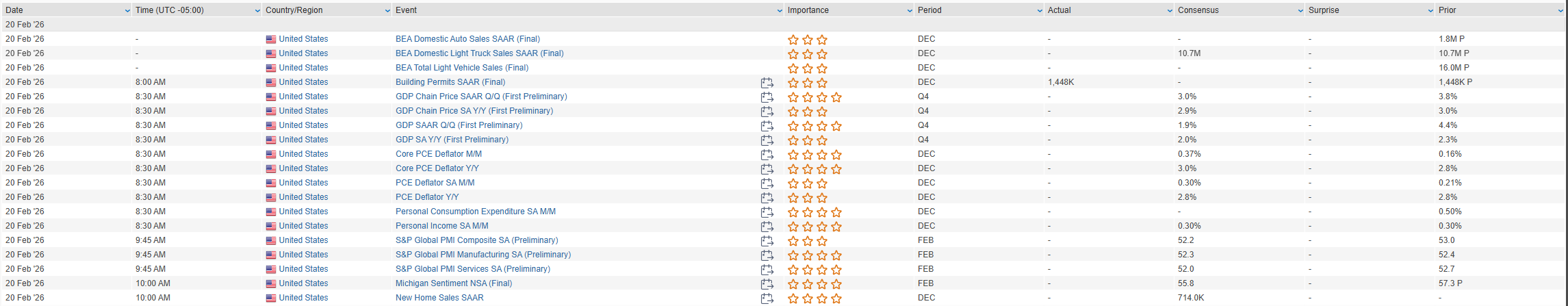 Eco Data Releases | Friday February 20th, 2026