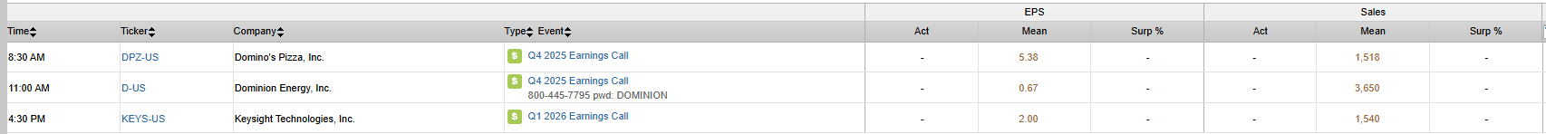 S&P 500 Constituent Earnings Announcements | Monday February 23rd, 2026