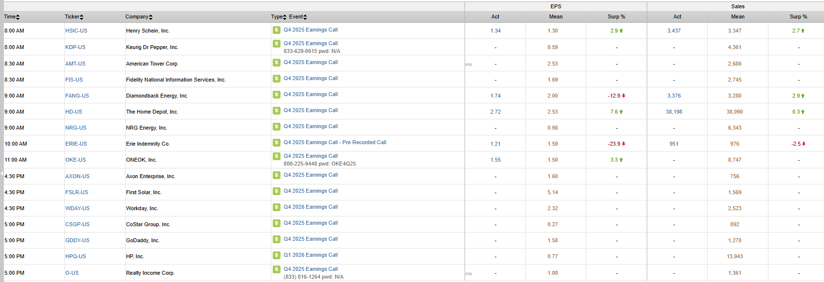S&P 500 Constituent Earnings Announcements | Tuesday February 24th, 2026