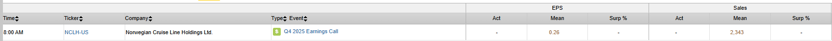 - Monster Beverage (MNST): Q4 beat and strong January trends; tariffs remain a margin headwind.