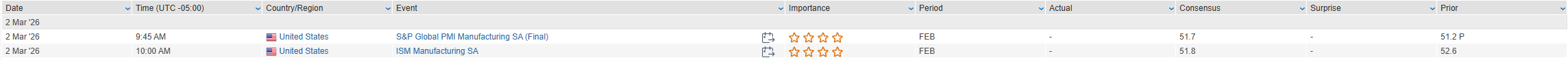 Looking ahead, next week’s ISM Manufacturing (consensus 51.8), ISM Services, ADP payrolls, Challenger layoffs, retail sales, and the February employment report (consensus ~60K payroll growth) will be pivotal. Manufacturing in particular has become central to the cyclical rotation debate, especially given January’s standout 52.6 print.