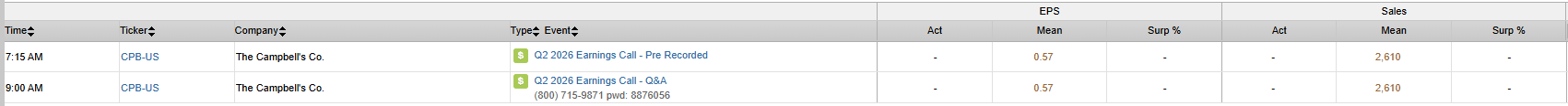 - CPB (Campbell’s) reporting today.