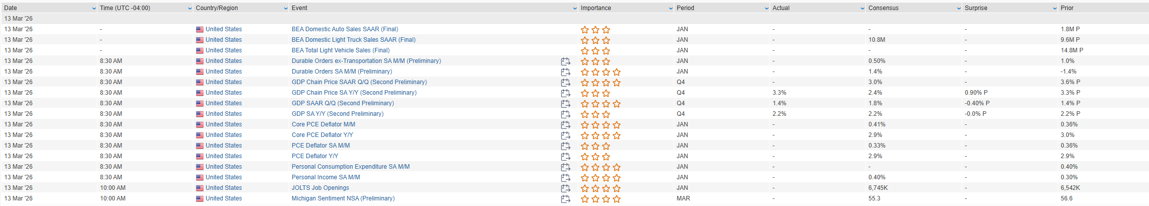 Eco Data Releases | Friday March 13th, 2026