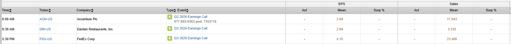 S&P 500 Constituent Earnings Announcements | Thursday March 19th, 2026