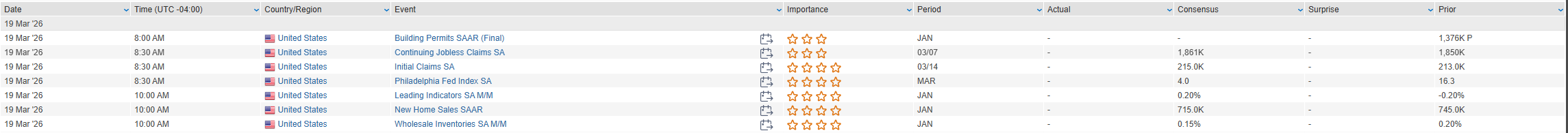 On the data front, today brings jobless claims (expected ~215K), Philly Fed manufacturing, and new home sales (-2.7% m/m expected). No major releases are scheduled for Friday.