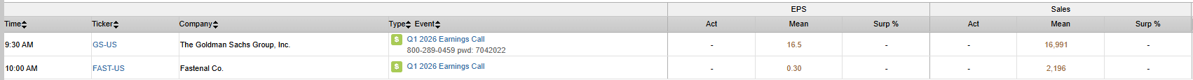 - GS: Reporting Q1 earnings today; start of earnings season focus