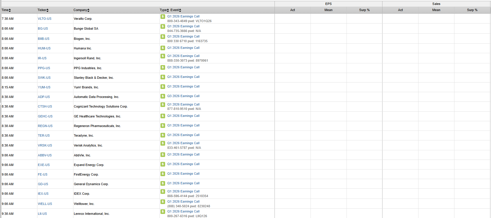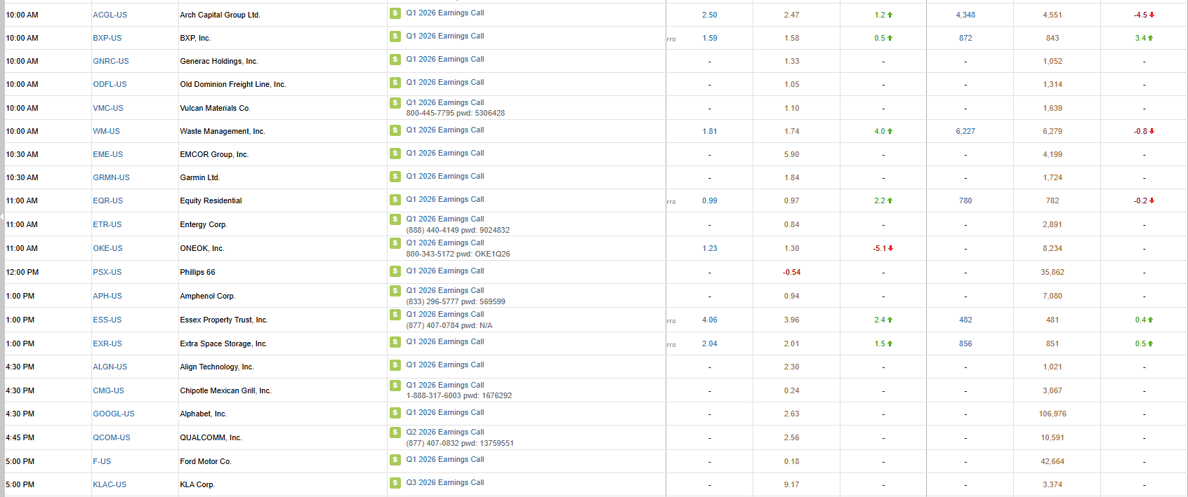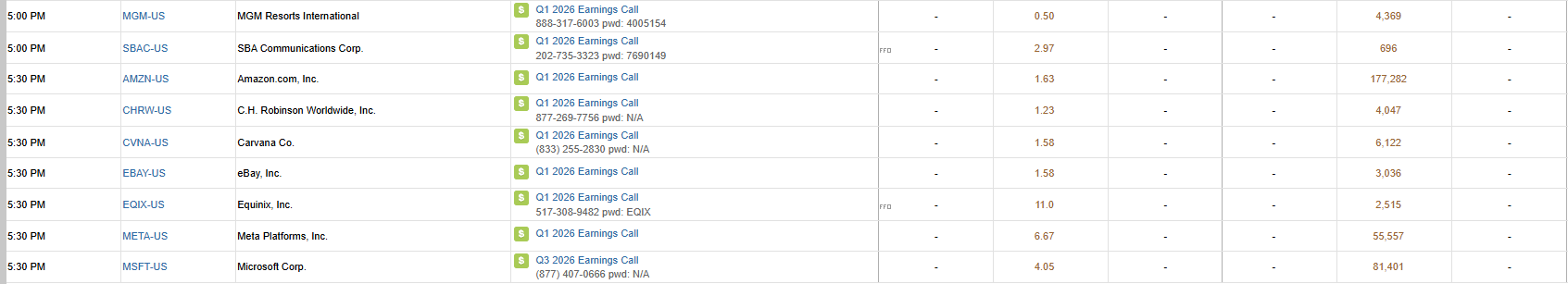 S&P 500 Constituent Earnings Announcements | Wednesday April 29th, 2026
