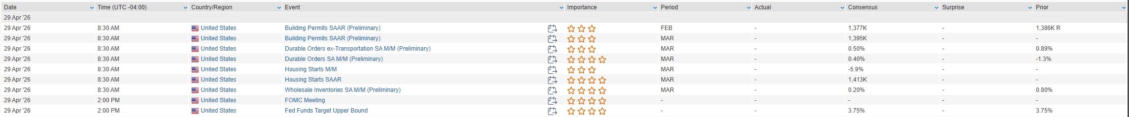 Eco Data Releases | Wednesday April 29th, 2026