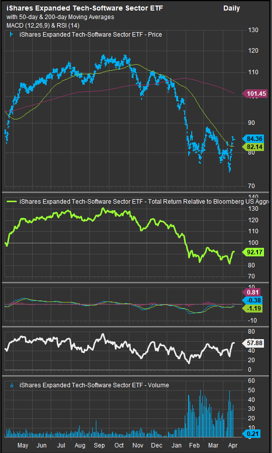 Software funds are bouncing from deeply oversold conditions. The technical setup remains challenged, as there are likely plenty of trapped longs that may look to any relief rally as a chance to exit positions.