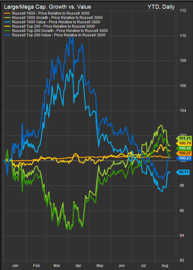 Looking at Small/Mid Growth and Value (below), MidCap stocks have been under pressure regardless of style, while Small Cap. Growth stocks traded to multi-month relative highs and have our attention as an accumulation opportunity.