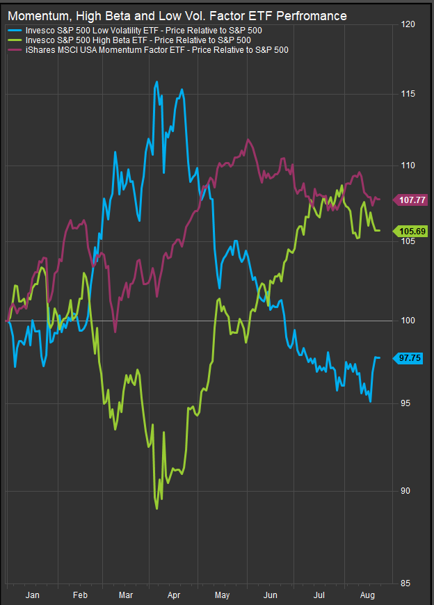 High Beta/Low Vol. proxies (below) are tracing out a very similar arc to our Growth and Value indices. Notably, the iShares Momentum ETF (MTUM) remains above February highs as investors aren’t exactly fleeing out of previous leadership in the near term.
