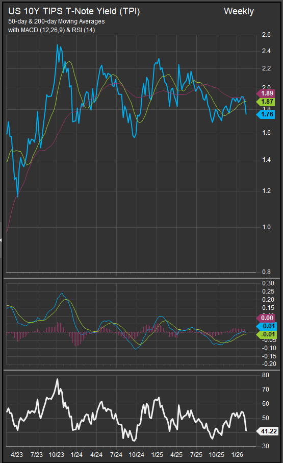 At a high level, a real yield is the return investors earn on a bond after accounting for inflation. In practice, markets measure this using the yield on U.S. Treasury Inflation-Protected Securities (TIPS). The 10-year TIPS yield represents the inflation-adjusted cost of capital over a decade.