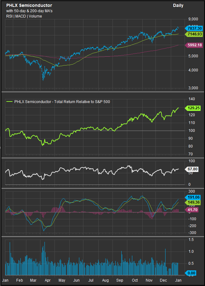Sox Index: Semiconductors remain a leading industry within equities despite rotation away from more pure Growth stocks