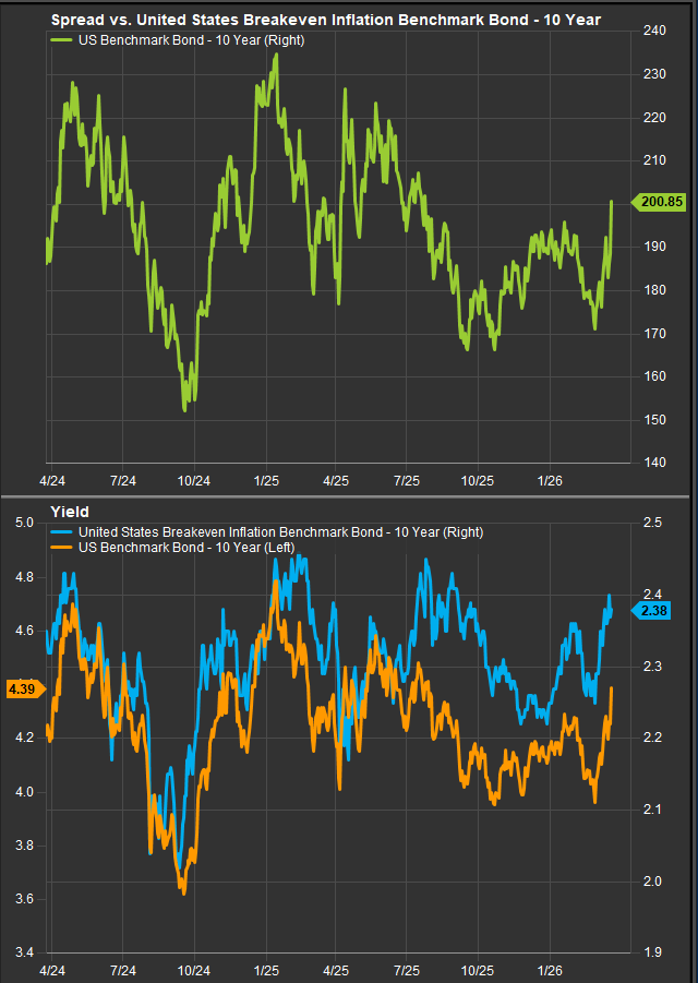 If this inflationary regime persists, sector leadership is straightforward. Energy remains the primary beneficiary, with direct earnings leverage to higher oil and gas prices. Materials follow, supported by rising commodity prices and supply constraints. Financials benefit from higher rates and inflation expectations, particularly if the curve steepens modestly. These dynamics are already visible in earnings expectations, with Materials projected to grow earnings by ~24.6% y/y and Financials by ~11.6%, second only to Technology.