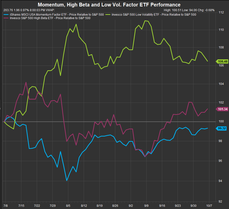 Factor ETF’s show Risk-on Performance firming vs. Risk-off