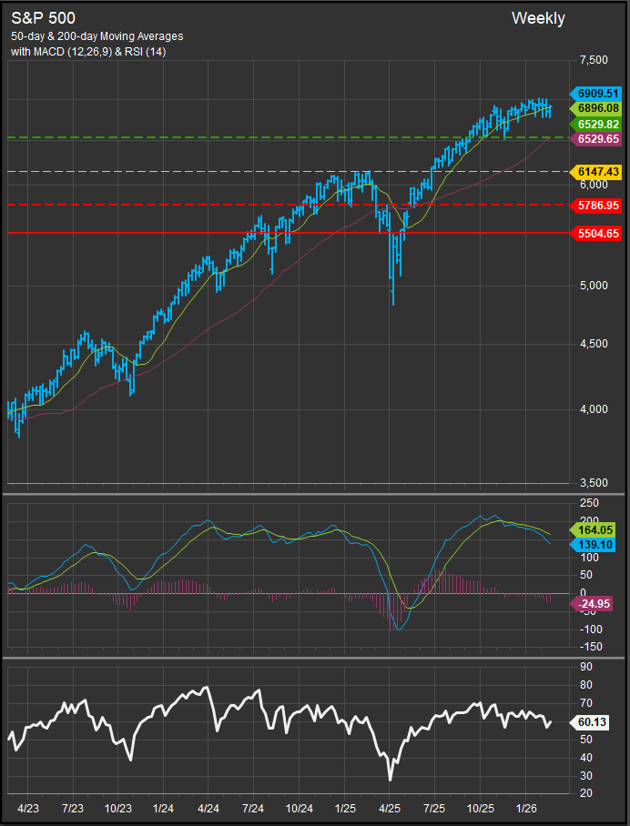 S&P 500 price action has shown weakening momentum since October 2025. Near-term price support resides at the 6530 level.