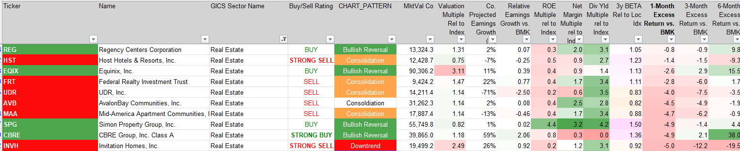 Large Cap. Real Estate Sector Price Action & Performance