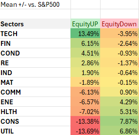 GICS Sector Excess Returns | Mean | S&P 500 Uptrends 1995-present