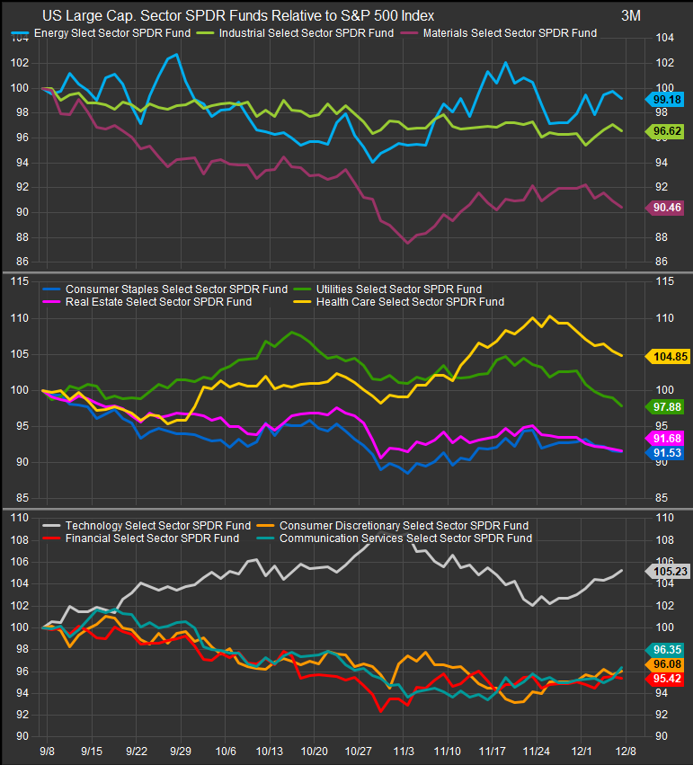 Election-year policy noise will persist, but the structural picture is unchanged: healthcare spending growth remains well above GDP, pipeline productivity is strong across oncology and immunology, and the sector has proven to be an effective late-cycle ballast. Unlike Staples—which benefit from affordability trends but face margin sensitivity—Healthcare offers both stability and multi-year earnings momentum. It deserves a meaningful overweight heading into 2026.